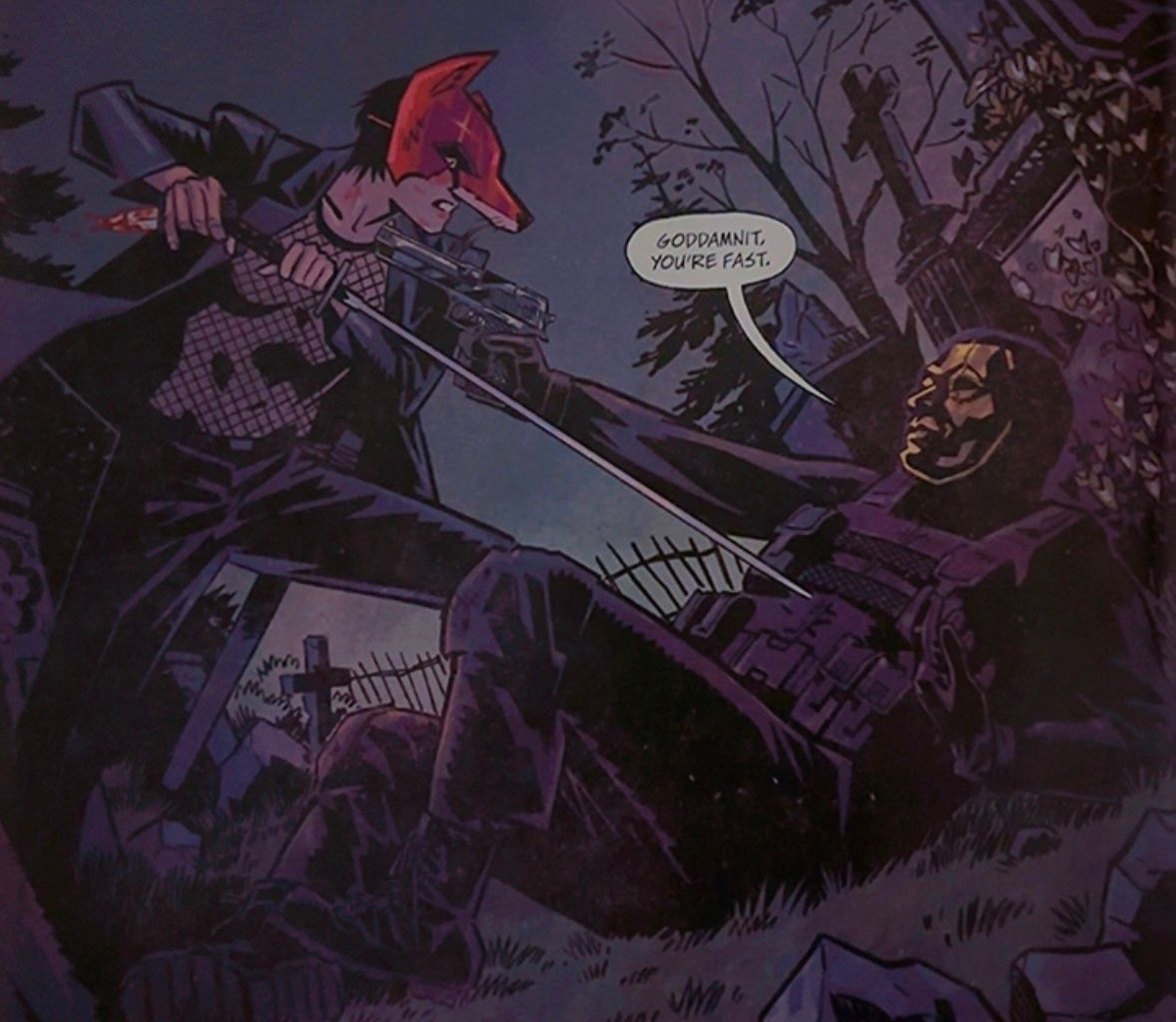 Good issue, focusing through multiple storylines in this issue. The fight between LONE GUNMAN & FOX MASK KILLER was nice. Both characters are my favorite. They have personal motives as far as why selected to be this year killers. The pit is full of drunk teenagers, a perfect place for chaos to happen. Dig the way the score card is unknown at the end of this issue, keep you guessing who’s off the list. I’m ready for the next issue.